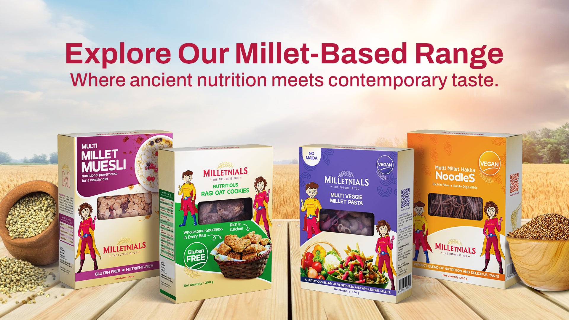At Milletnials, we believe that nourishing your body should be simple, sustainable, and accessible to everyone. Our mission is to make millet a staple in your daily meals, offering a diverse range of millet-based products that are delicious and rich in nutrients. With a focus on wellness, organic ingredients, and modern convenience, Milletnials is more than just food—it's a step towards a more balanced and sustainable future.